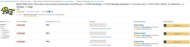 Справедливо номер 1 с огромным отрывом. Изначально, с момента основания, нацелен на продажу онлайн и довольно крупный игрок на Amazon в США. А качество даже бытового инструмента для США гораздо выше, чем для России. Характеристики не завышаются, ведь в США за это огромные штрафы.