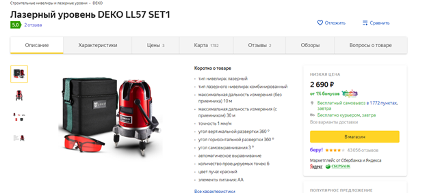 Однозначно, у Deko очень хорошее измерительное оборудование и очень агрессивный ценник для РФ (дешевле, чем та же продукция в США, и сильно дешевле аналогичных продуктов под локальными российскими брендами). Ручной инструмент хороший по соотношению цена / качество, но при этом он бытовой (Jonnesway или Licota за такие деньги вы не получите, но аналоги под РФ марками стоят сильно дороже). С электроинструментом дела обстоят сложнее: без склада в РФ его продавать сложно (дорогая логистика из Китая, товар тяжелый). Многие российские дилеры Deko не любят и отказываются с ним сотрудничать, но на крупнейших площадках найти реально. Маржа очень небольшая (китайцы в этом сегменте привыкли работать с наценкой процентов в 10%). А многие отечественные дилеры на бытовом инструменте привыкли зарабатывать (от 50% до 100%). Пример (разница почти в 2 раза для клиента за похожую модель, притом это все равно одна из самых низких цен для локального бренда):
